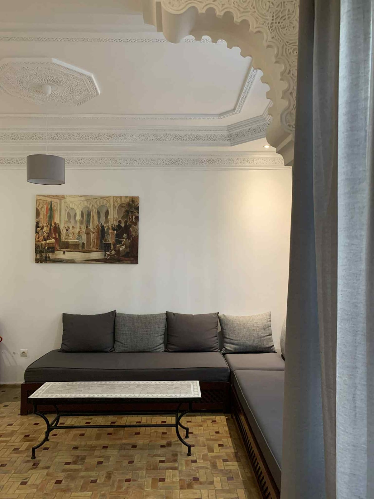 On the 2nd floor, this beautiful 2-bedroom apartment located on the edge of the ramparts of the medina will delight you with its exceptional and unique sea view. You won't get tired of looking at it from the large windows in the living room. With its zellige floors and local stone pillars, you will have an unforgettable stay in this apartment. The living room consists of a sitting area, living room, kitchen - 2 beautiful bedrooms each with their own bathroom/toilet.