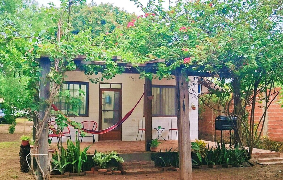 Here you can breathe tranquility, pure air, ideal to relax with the whole family or friends, spend an unforgettable vacation, fully equipped, comfortable and with a large garden patio orchard. Well located, it is located 3 blocks from the main square, 20 km from Roboré and 30 minutes from Águas Calientes. Escape the routine in this beautiful place in nature to find peace and rest from routine and work. There is parking for several cars.