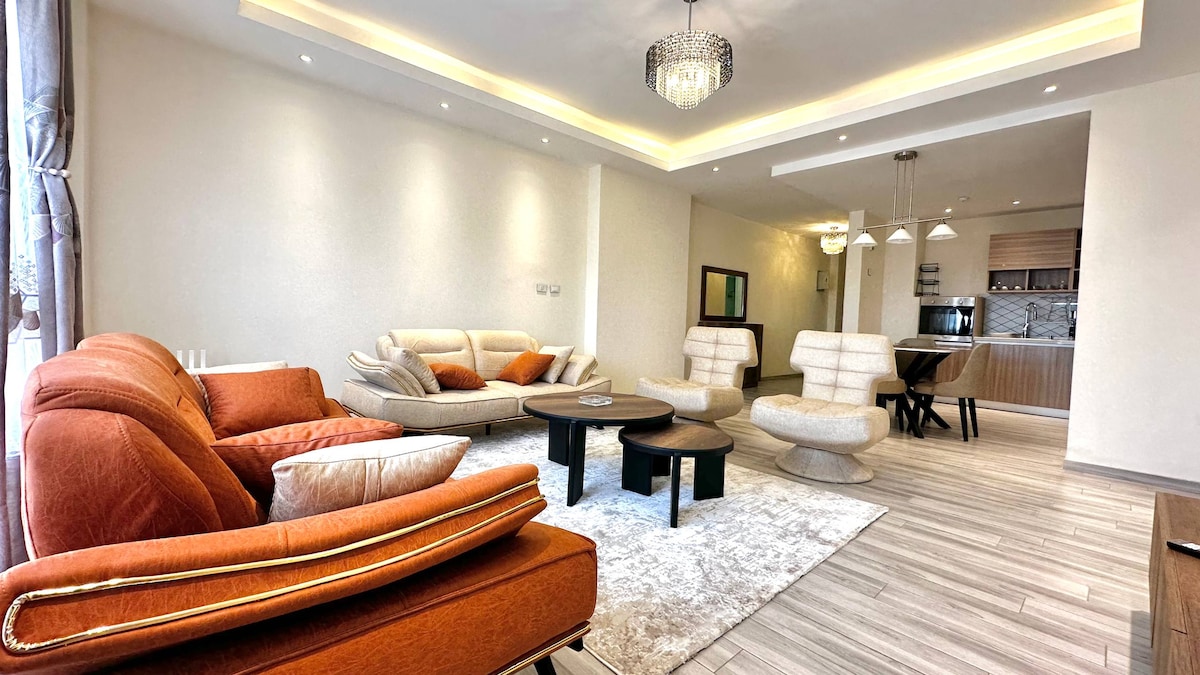 Welcome to your downtown oasis near Bole International Airport! This spacious 3-bedroom apartment features three private showers, a fully equipped kitchen, and a dedicated laundry room. Enjoy stunning city views and the convenience of a backup generator and parking space. Perfectly located in the heart of downtown, you’re just a short walk from local attractions and chill spots. Whether for business or leisure, this modern retreat is your ideal home away from home. Book your stay today!