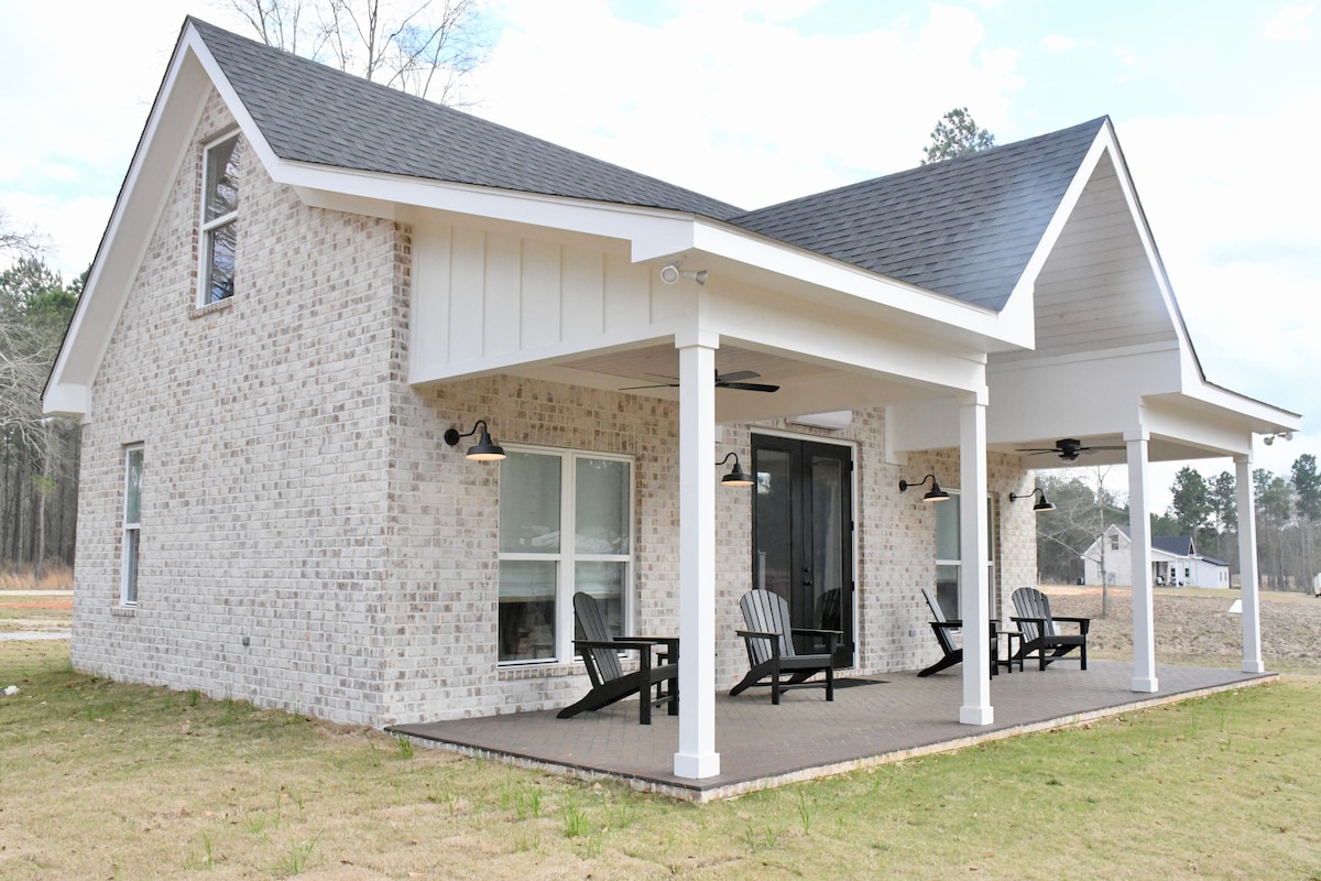 Southern lake charm perfect for a romance, family fun, & holidays. Quiet beautiful inlet.Main lake view. Level walk to water. Boat dock, swing, 2 kayaks, picnic tables, grill, fire pit. 45mins. to Ft. Benning. 30 min. to Providence Canyon. 15 min. to Lakepoint State Park. Circular driveway is private, easy in/out for trailer/boats.Shopping, restaurants & boat launch w/in 1 mile. Big yard. Jacuzzi tub, WIFI, Cable. 3 beds: king, queen, full. 2 full baths. Accommodates 6. *Pets allowed w/approval.