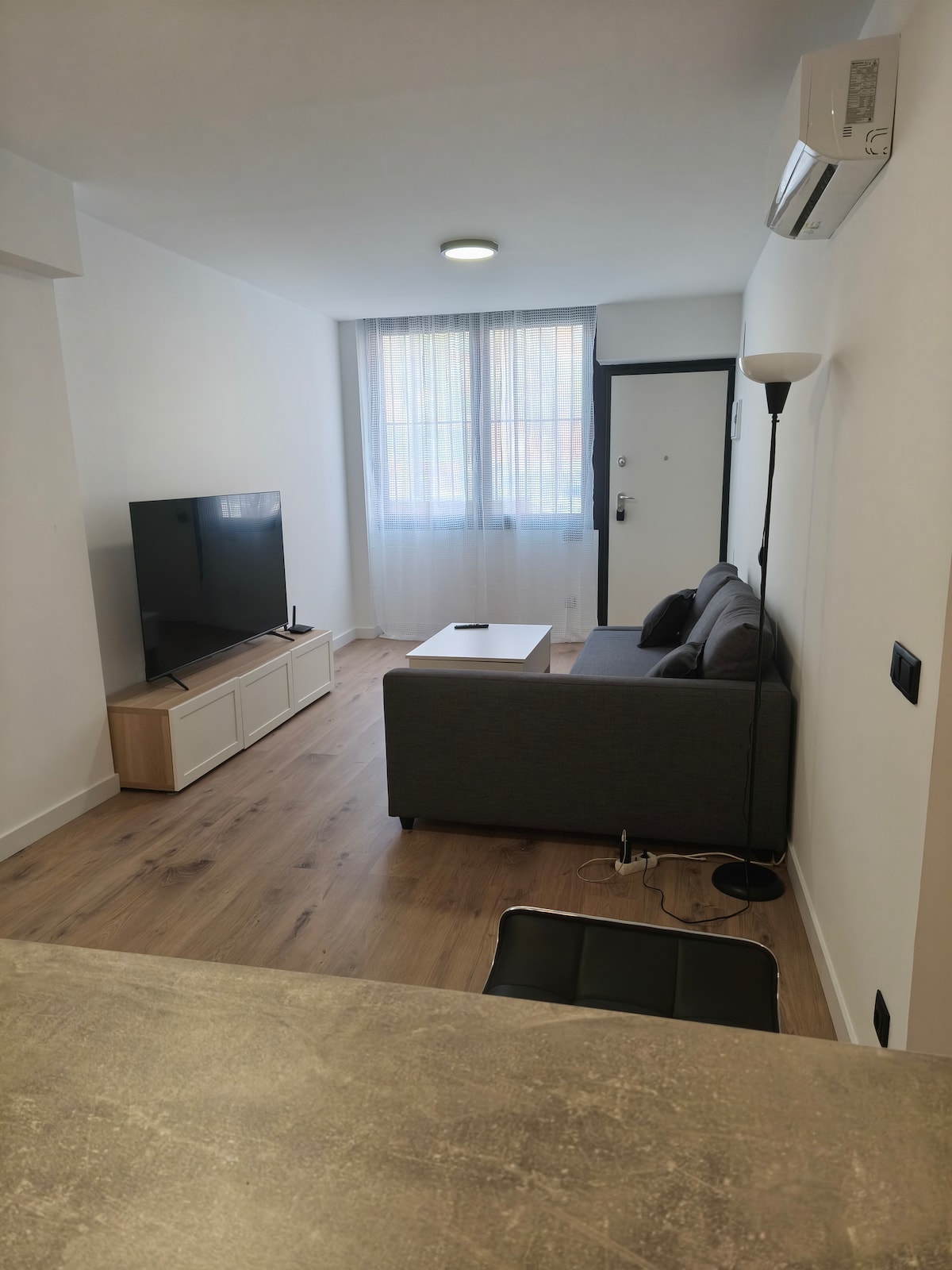 Magnificent 45 square meter apartment in the heart of Madrid. With spectacular design and decoration, spacious areas, and high ceilings, the apartment is equipped with everything you need for your stay in Madrid. The living room has three balconies overlooking the street that provide great brightness to the flat. The bedroom has an en-suite bathroom and a work desk. From the apartment, you can walk to almost all the iconic points of Madrid.