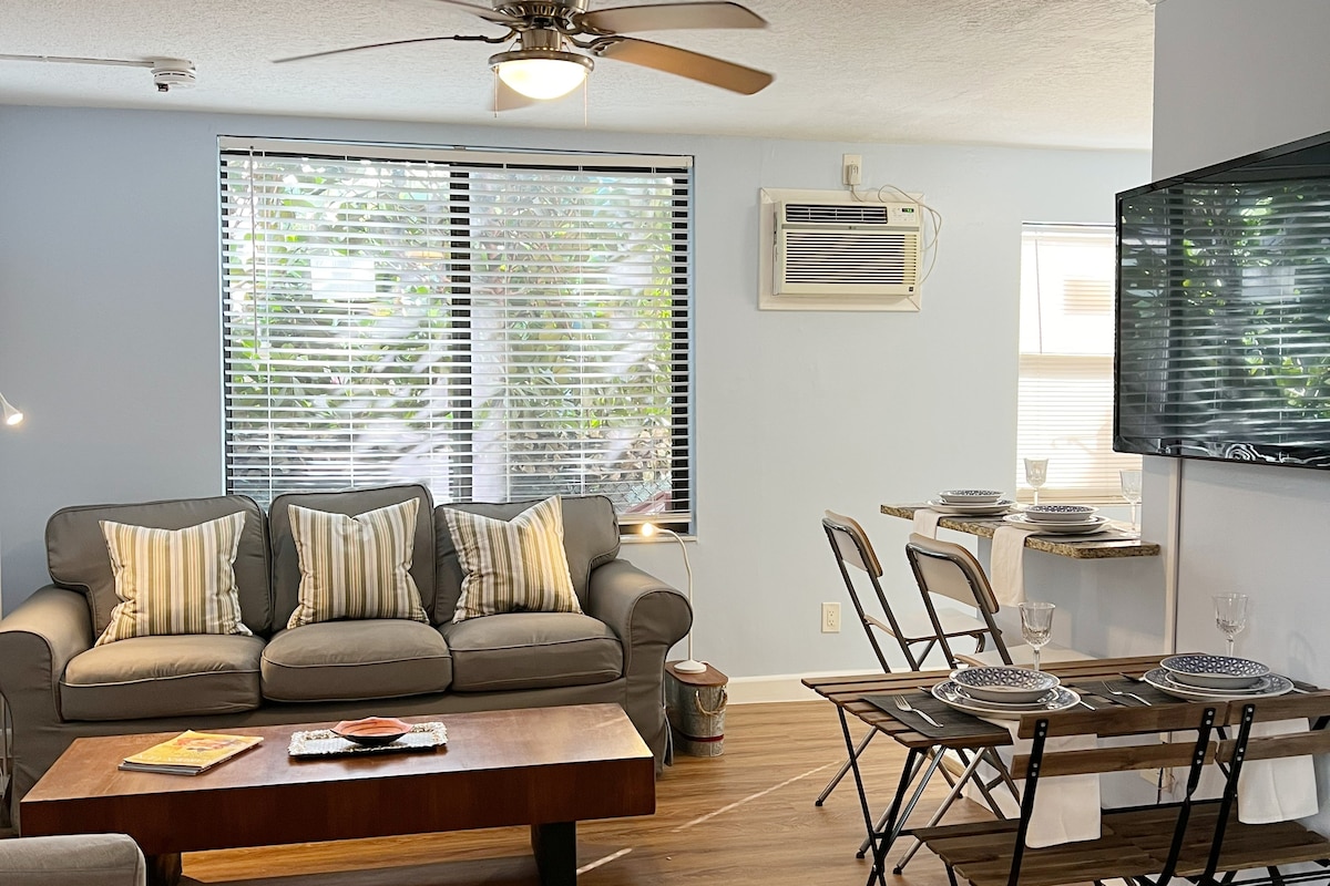 Perfect location! Minutes from the beach and fully renovated with private outdoor space, efficiency cottage. Dogs welcome! Circuit- free rides to Palm Beacg/downtown west palm. 10 min drive to the beach, mins from downtown, close to city place (.2 miles) and Kravis center (.4 miles). Walk to intercostal. Perfect location in a quite neighborhood. Dog park and kids park down the street. Remodeled cottage with full kitchen and bathroom. Queen size bed and pullout twin couch. Washer and dryer.