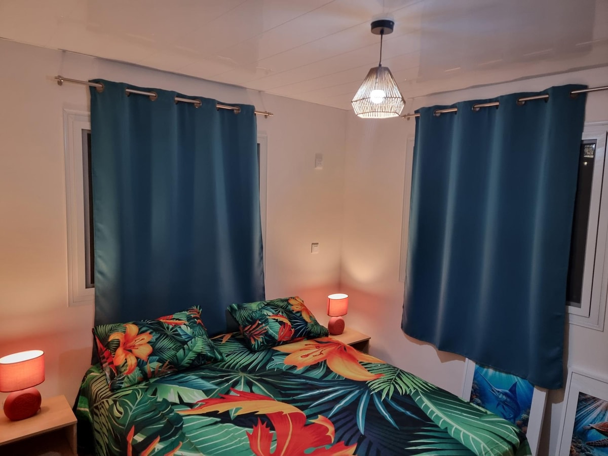 Bungalow duplex indépendant, bord de mer, situé dans une propriété privée. 1 chambre climatisée avec 1 grand lit 2 places + 1 canapé-lit. Un espace cuisine et salle de bain. Terrasse privative exterieure dans jardin bord de l'eau. 2 kayaks à disposition pour accéder au banc de sable à 100 mètres du faré et au spot de surf de Taapuna, à 800 m. Aéroport international /inter-îles à 10 minutes en voiture. Supermarché ouvert 24h/24 à 10 minutes à pieds. Restaurants, snack et roulottes à proximité.