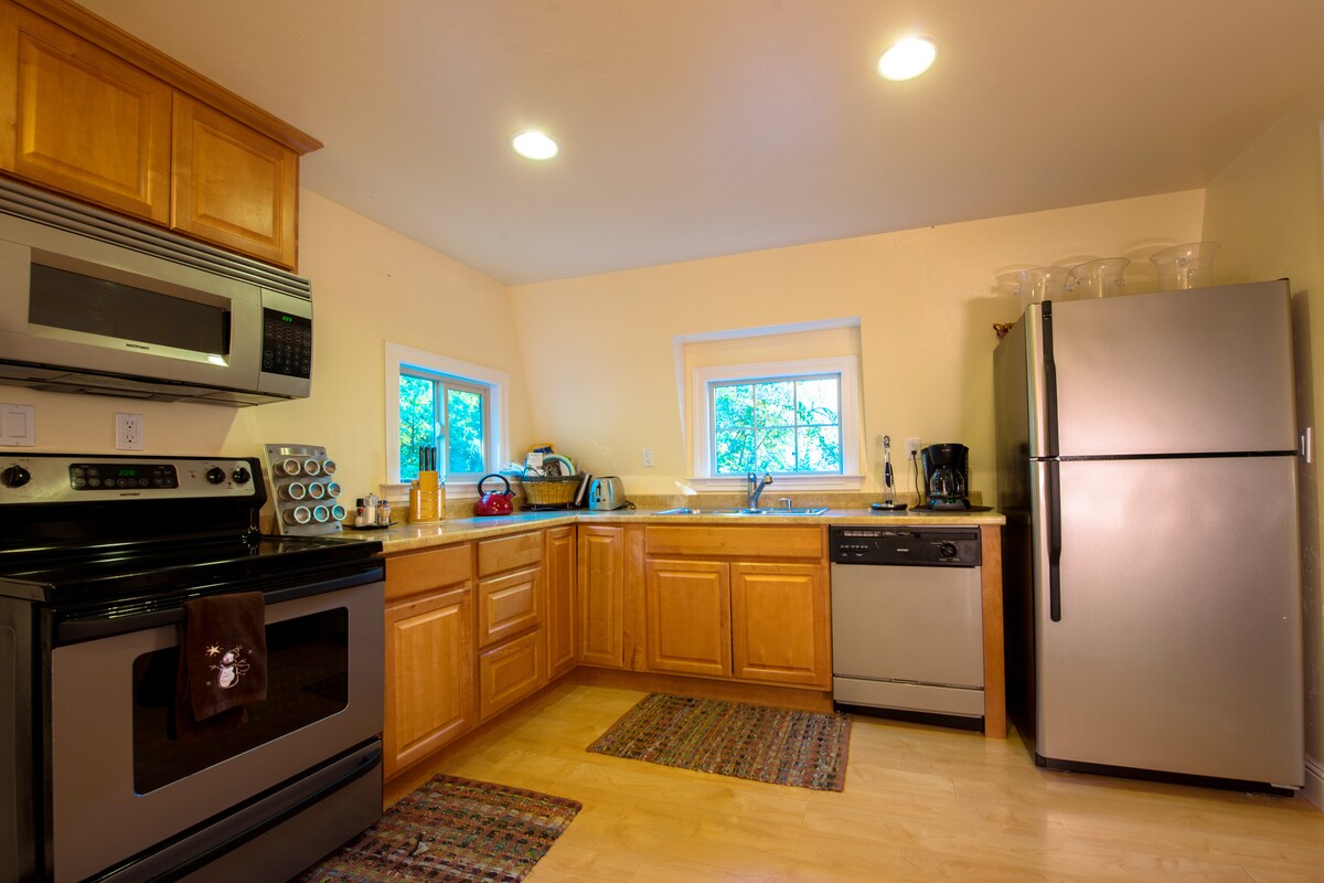 Tiny VaultedHaus is new, completed in 2021. Located in Historic Downtown Vacaville, walk to Restaurants, Cafe's, parks. Stylish & Modern. A large covered breezeway separates you from main house, no shared walls, private entry w/ door code. Attention to detail was made to ensure our guests a comfortable & stylish stay. Comfy Queen bed, toiletries, stocked kitchen & private patio. Napa, S.F., Sac, Winters all at your fingertips. Dog allowed w/ permission & $65 pet fee.