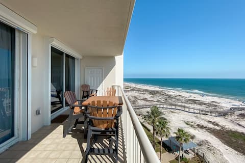 ASK about DISCOUNT rate for monthly stay in January and February 2026. DON'T FIGHT THE CROWDS for space on the beach! Unwind in our comfortable 4th floor Beach Front "Slice of Paradise" with private beach. The balcony offers unobstructed, gorgeous views of the Gulf and the beautiful white sands of Perdido Key. Soak up the sun as you kick back on the balcony and count the dolphins while being lulled by the sound of the waves and the salt air breeze. Recently UPDATED-New photos coming soon!
