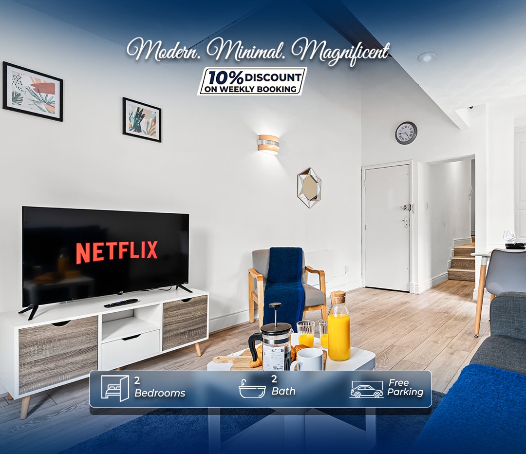 🏡Step into this sleek 2-bedroom South Manchester retreat. modern finishes create a relaxing sanctuary for your stay. 📍Property : 🛋️ Stylish Lounge: Unwind by the smart TV in a living room with striking blue accents. 🍽️ Cozy Dining: Enjoy meals or morning coffee at the dedicated table. 🛏️ Premium Bedrooms: Rest easy with hotel-quality beds and a sleek workspace. 🚿 Modern Bath: Refresh in a pristine space with a full bathtub. Enjoy premium comfort and home convenience.