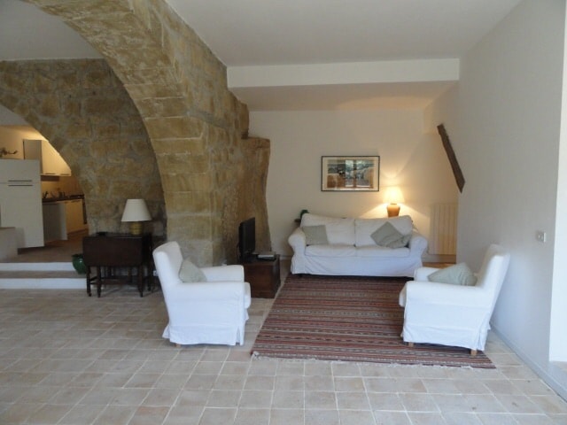 L'appartamento é due piani sotto la piazza, interamente scavato nel tufo. Con vista sulla valle, é isolato dai rumori della strada, tranquillo, privato e molto accogliente. Le pareti in tufo gli donano un'aria antica, per trasportavi altrove nel tempo. Si raggiunge a piedi, attraverso un ponte pedonale che vi porta direttamente nella piazza dove c'é l'immobile. É perfetto per brevi soggiorni di completo relax, ma con la cucina totalmente attrezzata si sfrutta al massimo.