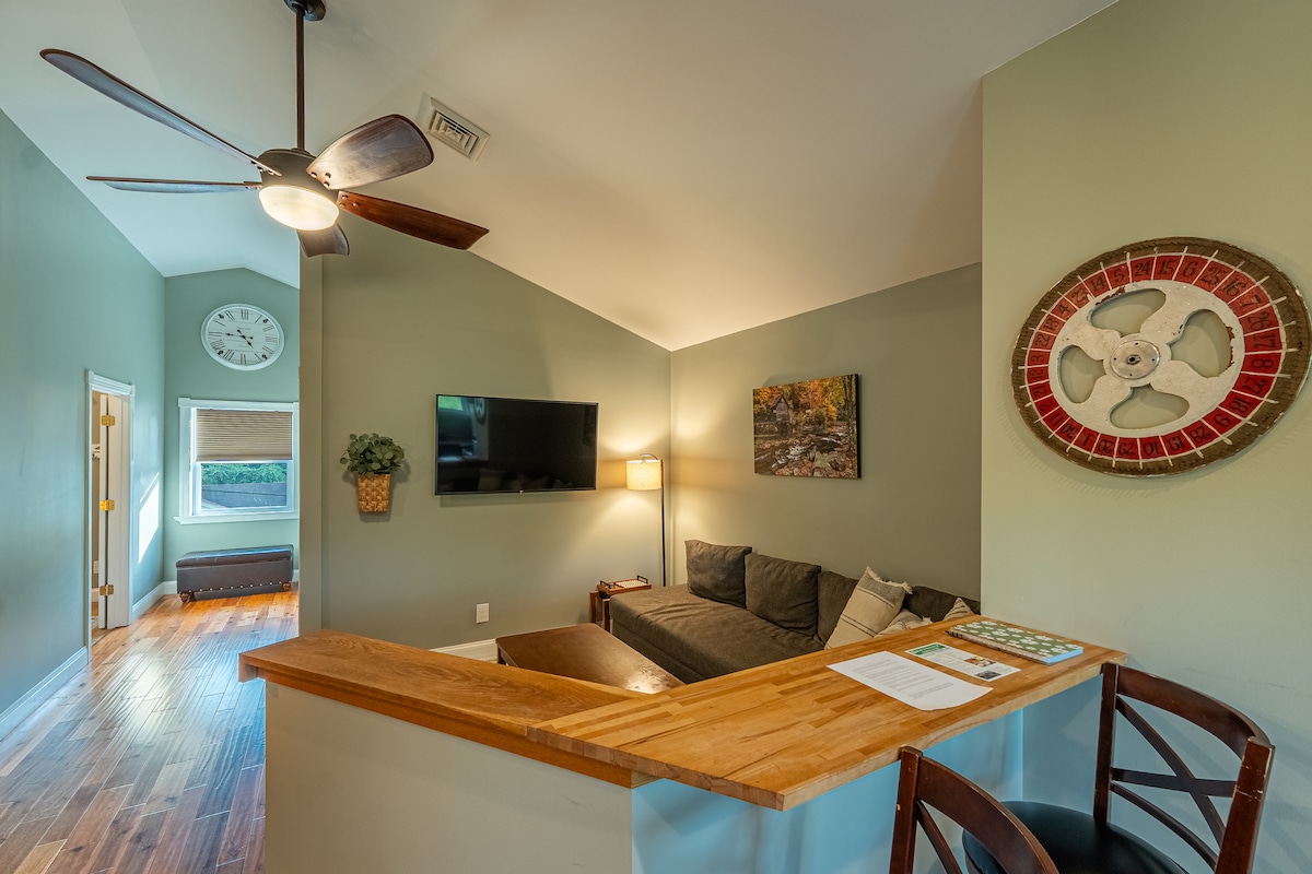 Stay in our modern bungalow just steps from New River Gorge National Park & 5 mins from Fayetteville. Relax in the bright open living area after a day of adventure - rock climbing, rafting, or mountain biking. Enjoy a fully equipped kitchen & comfortable sleeping quarters. Your perfect home base for exploring the park's stunning scenery!