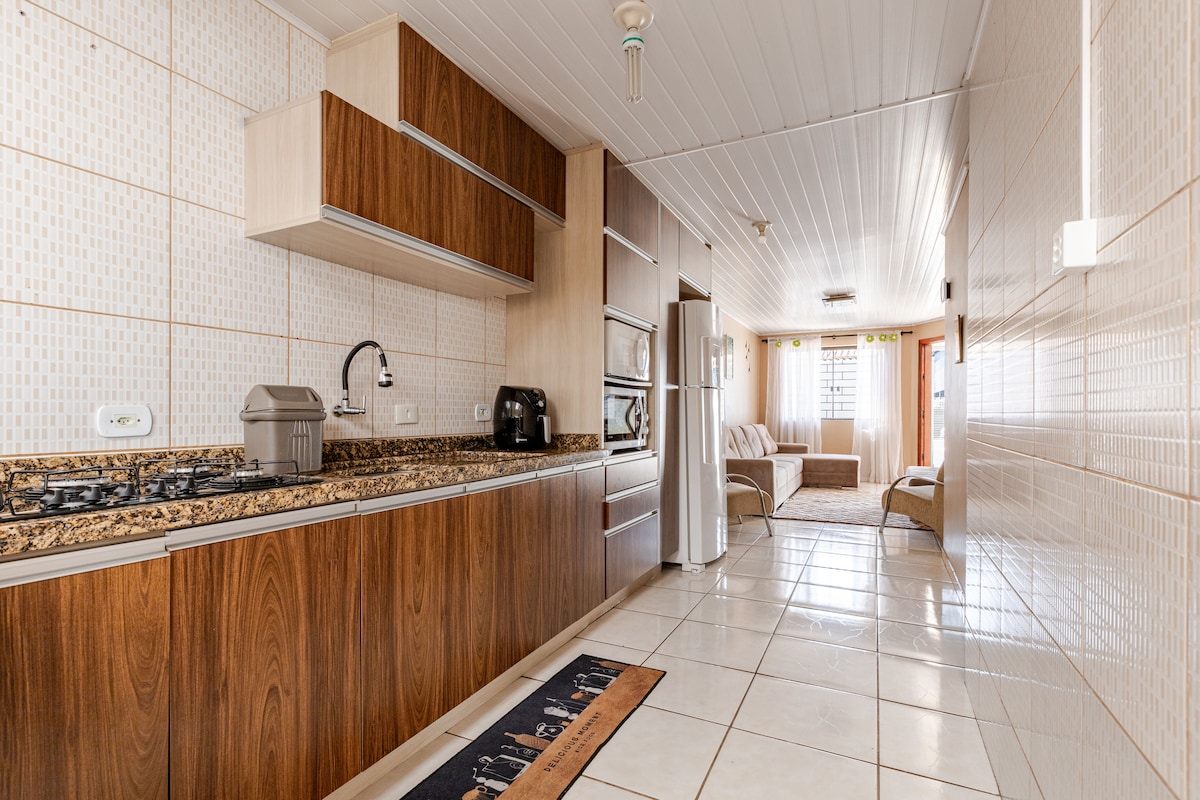 Casa espaçosa com piscina privativa e área gourmet em Fazenda Rio Grande. Ideal para famílias, grupos ou viagens a trabalho. Conta com 3 quartos, sala ampla, cozinha equipada, garagem para até 3 carros e churrasqueira. Localizada no bairro Eucaliptos, próxima a comércios e polo industrial, com fácil acesso ao centro e a Curitiba.