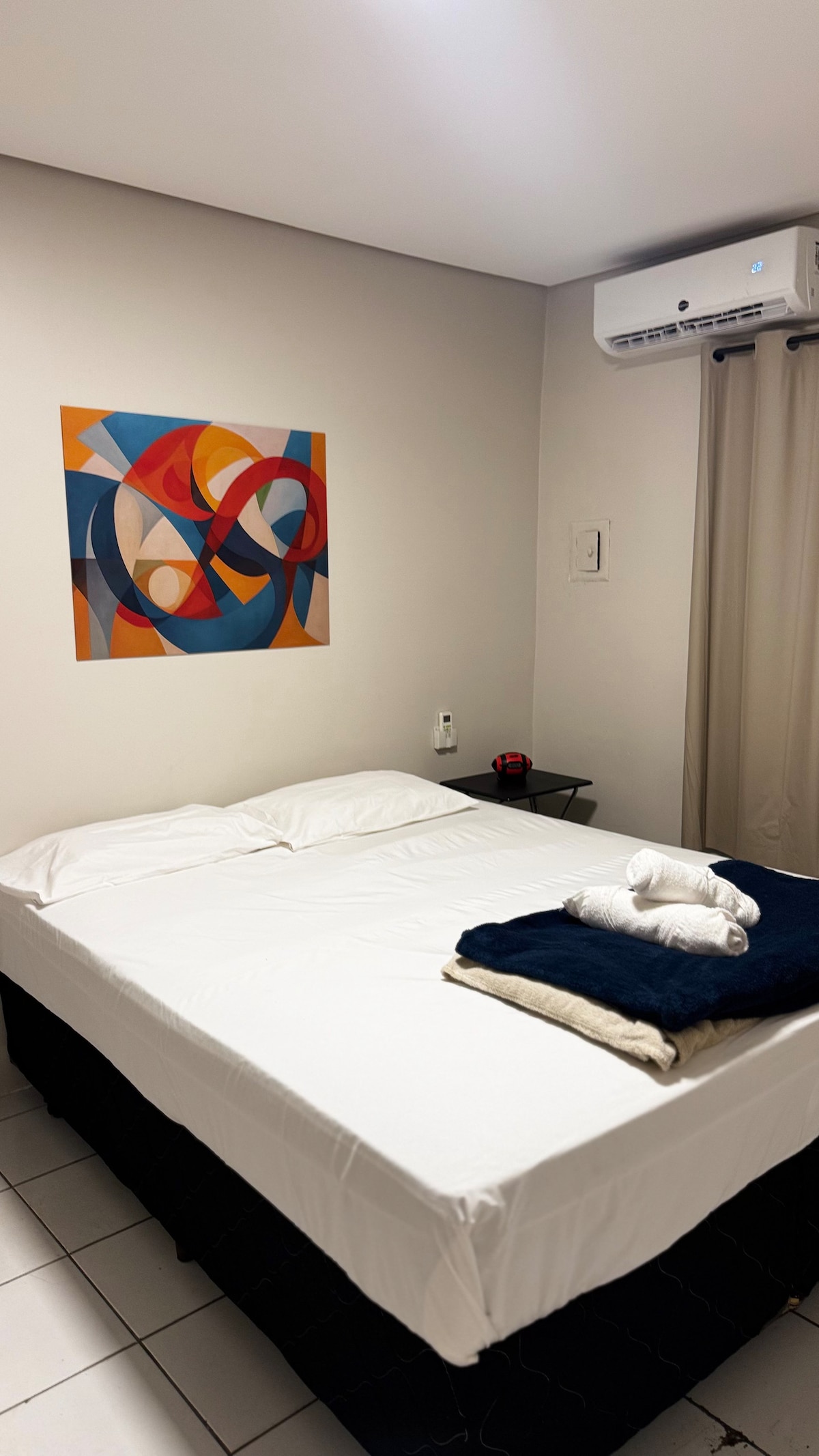 Flat on the Penthouse of Ed. Fusion Work Live, with a great location, in the North Hotel Sector, very close to the National Park. The apartment is differentiated, with 1 double bed and 1 sofa bed, bed and bath linen, TV, Wi-Fi, air conditioning, dining table, work table, cabinets, small kitchen, refrigerator, kettle, sandwich maker, air fryer, induction stove, pots, dishes and cutlery. The air conditioner is located in the hallway, in the bedroom we added a climate control unit.