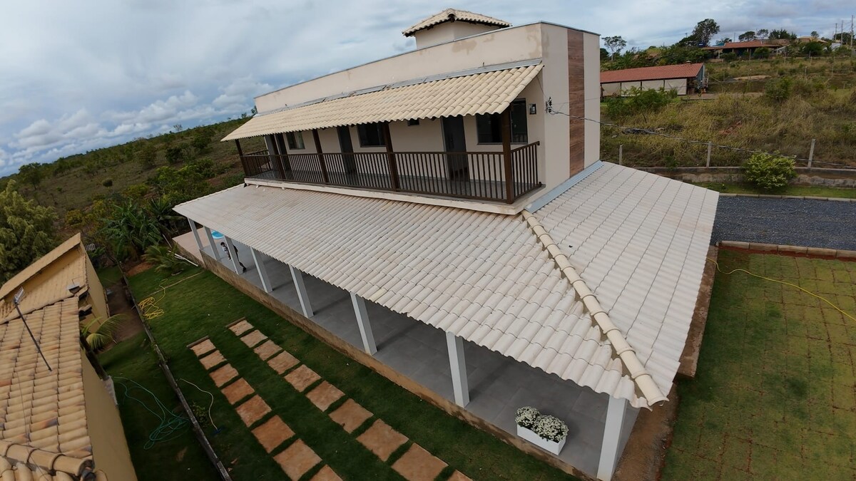 Esta acomodação confortável é perfeita para viagens em grupo. 3 suites. cozinha equipada. Area gourmet. Piscina. Acesso a Represa de Três Marias c deck para barcos. Paz, conforto e tranquilidade