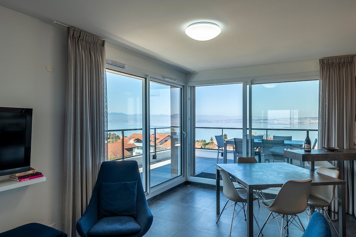 ✨ Nice studio with stunning views of Lake Geneva ✨ Independent 🏡 studio in a cottage with terrace and garden, offering a quiet and relaxing setting. Enjoy stunning views of Lake Geneva and a great location close to Thonon-les-Bains and Évian-les-Bains. Shops and services are quickly accessible. Great for a relaxing stay between lake and mountain! 🌿🌅🚗