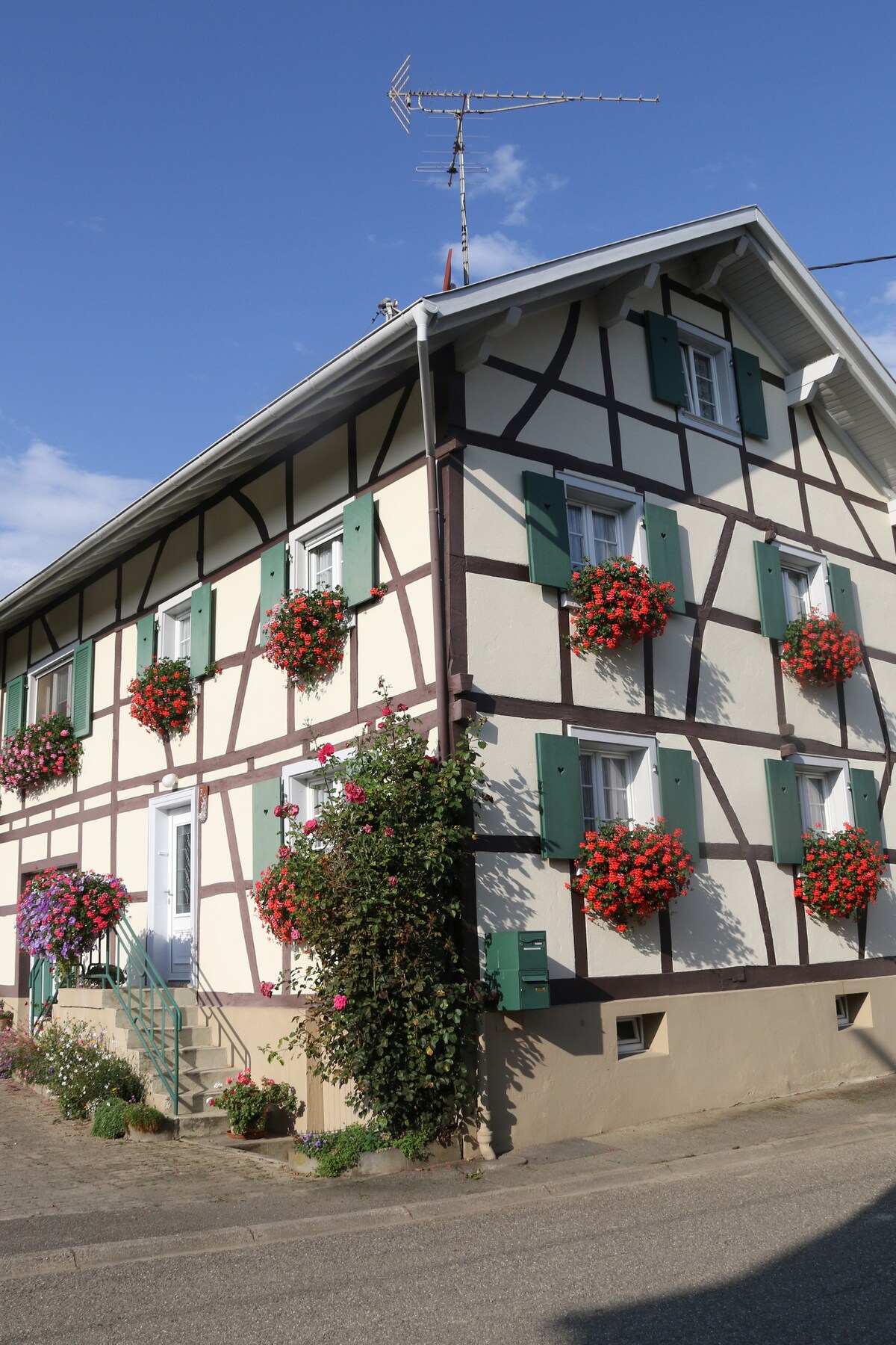 Independent accommodation on the 2nd floor (right door) in our Alsatian house dating from 1806 - very quiet facing the town hall. Beautiful exposed beams, very romantic mezzanine bedroom overlooking the center of the village & the bell tower. Free high-speed WiFi, air conditioning, TV: & Amazon Prime Video, Netflix. Fully equipped kitchen & washing machine. Euroairport Basel-Mulhouse 5.2 km, Basel 10 km, Weil-am-Rhein 17 km, Petite Camargue Alsacienne 6 km. Covered bicycle/motorcycle parking on site.