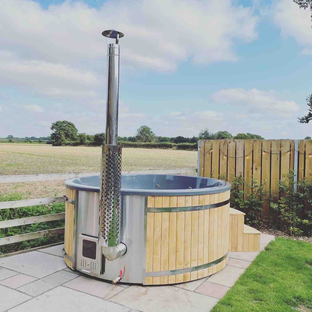 Come and stay in our beautifully finished, tin shepherds hut at the bottom of our garden. We are located in the rolling countryside with extensive views over the vale of York. After a day of exploring this AONB, there’s nothing like cooking tea over the fire pit or wood pellet pizza oven followed by a dip under the stars in our rustic hot tub. Fall into a fresh clean bed and wake up to the sound of the dawn chorus. Our bathroom barn provides all your needs for a morning freshen up!See you soon.