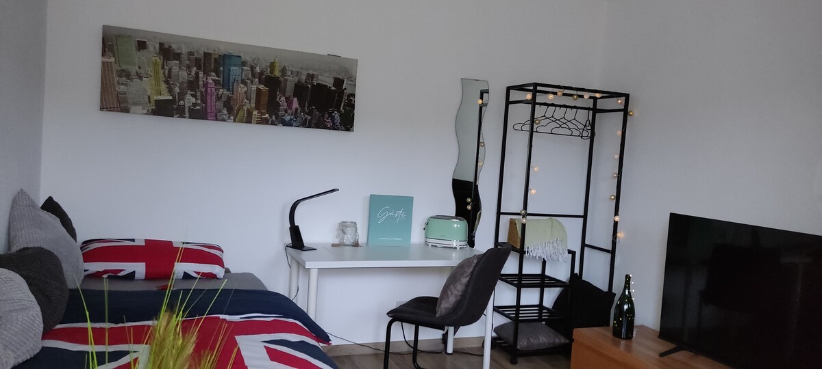 Living on the river, right on the Moselle and the cycling and hiking trail on the German-Luxembourg border. New, energetically renovated, fully furnished and stylishly furnished studio apartment. The room is equipped with a sofa bed, table, chair, TV, Wi-Fi, clothes rack, Kitchen with 2 hotplates, microwave, fridge with freezer compartment, sink, coffee maker (vintage), toaster (vintage), Bathroom with shower, toilet, sink with mirror cabinet