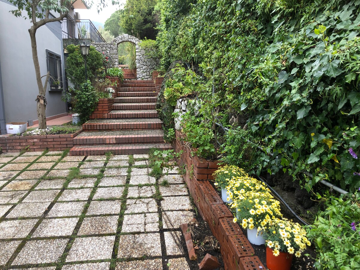 Villa indipendente sita in Viagrande (ct) via Palermo,11, con 1000mq di giardino con alberi da frutti . Situata alle pendici dell'Etna a due passi dalla splendida città barocca della Sicilia orientale "Zafferana" e dai piu’ interessanti siti del turismo naturalistico. depandance 25 mq con angolo relax esterno , bagno in camera , utilizzo esterno Cucina , Piscina, Solarium e barbecue