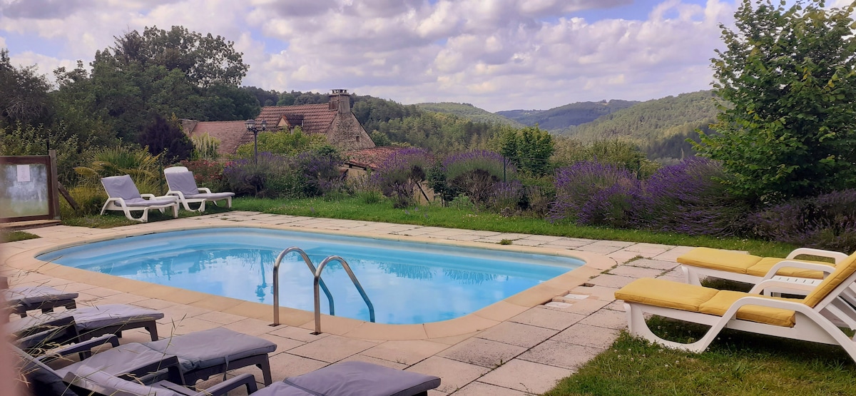 Come for Autumn Winter 2025/6 with a 30% reduction!! (Already applied) A charming farmhouse set in 10 hectares of land, in an enviable position with exceptional views. To be enjoyed at any time of year. Search for orchids in Spring; laze by the (shared) infinity pool in Summer; enjoy roast meats and chestnuts in the fireplace in Autumn or cozy up next to the Christmas tree with family in Winter. Saint Robert, one of ‘Les Plus Beaux Villages des France’, is only a few mins away or 20 min walk.
