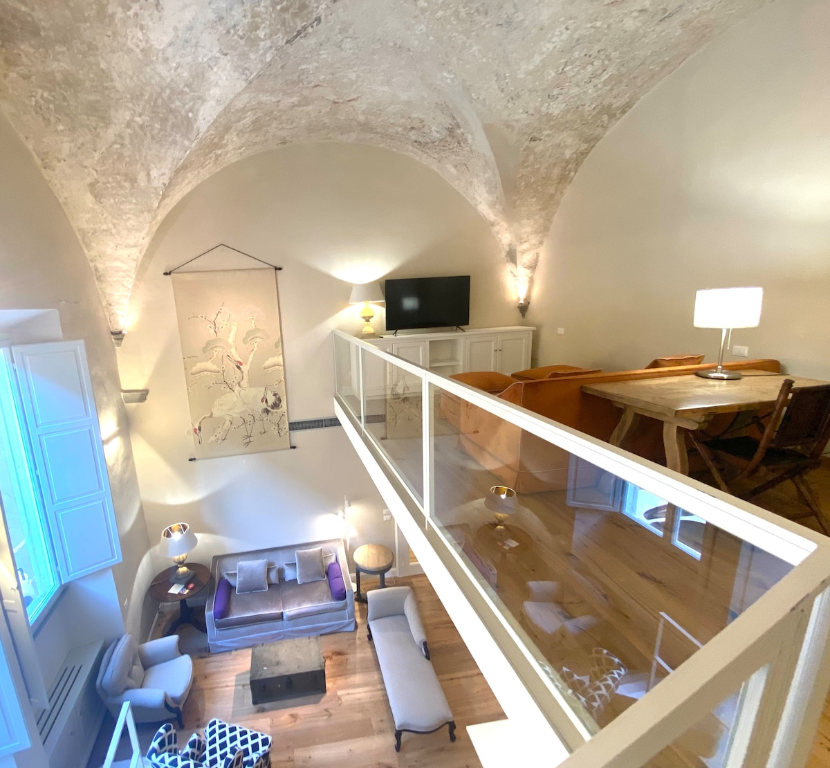 Charming and fascinating apartment in the historic center, recently renovated. The property can accommodate up to 8 guests in 4 bedrooms, three of which with a double bed and one with two single beds. Two complete bathrooms and one with shower and sink, fully furnished kitchen, washing machine, air conditioning and wi-fi. In this apartment dating back to the fourteenth century you will be enveloped by an atmosphere full of energy and history thanks to the original frescoes brought to light.