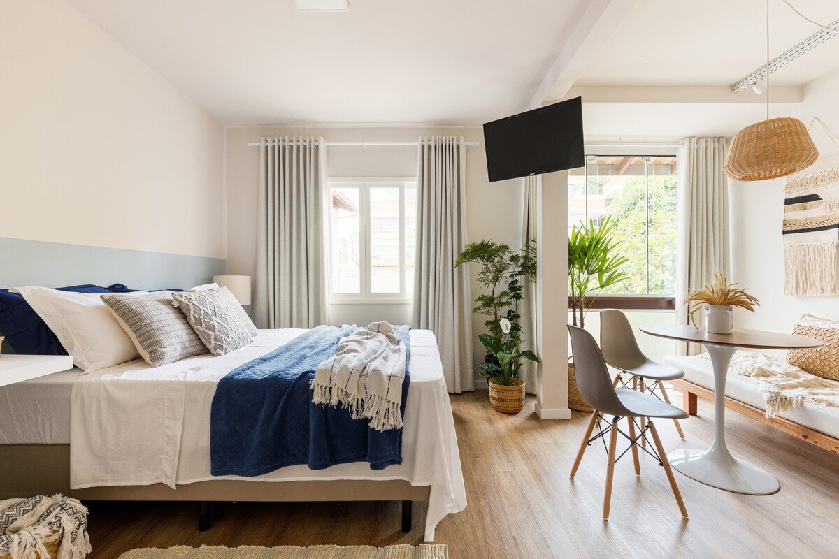 Discover the Loft of your dreams in Florianópolis! Just a 10-minute walk to the Events Center this charming and cozy space offers everything for a perfect stay: air conditioning, full kitchen, laundry, self check-in, Home-Office with monitor, ultra-fast internet and Netflix 24-hour covered garage ("gaveta") and doorman guarantee your safety. Close to everything: Cathedral, Public Market, bars and beaches. Comfort, practicality and unbeatable location await you! Enjoy a unique experience!