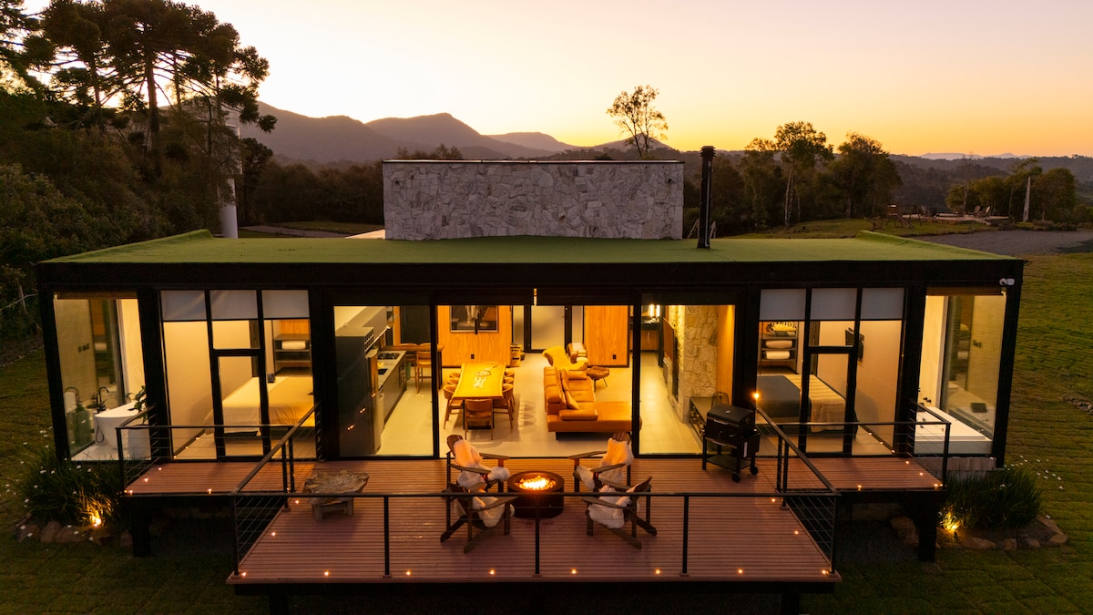 Experience unforgettable moments in this unique place, ideal for couples and families, located in Morro da Igreja, in contact with nature at an approximate altitude of 1500 meters and with a breathtaking view of the valley, an ideal view for your posts and streaming Our chalet is designed to bring comfort, luxury and privacy to our guests, with a romantic and modern touch. With a hot tub with chromotherapy facing the valley, and a jacuzzi on the deck, all heated by gas.
