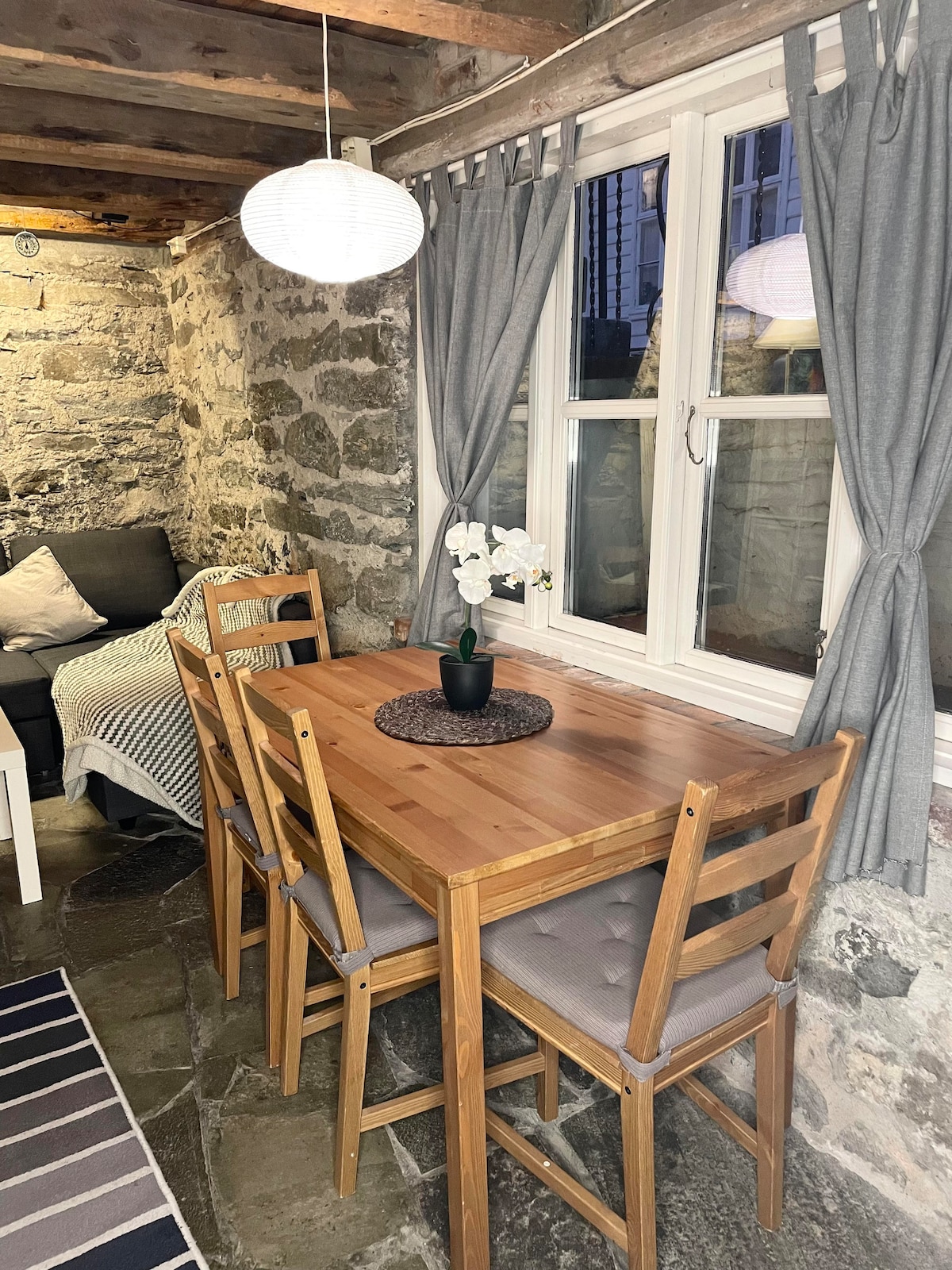 Welcome to the historic Bergen house, dating back to around 1780, located in the charming Sandviken area just a stone's throw from the bustling city center among local residents. You'll have the entire house to yourself, complete with a cozy outdoor terrace. The property is secluded from street noise, tucked away in a small alley. Its convenient location offers easy access to supermarkets, a bus stop, hiking trails, and city bike parking. Additionally, you can find paid street parking nearby.