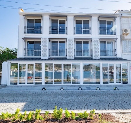 BD Suites is a 16-room facility located on the beachfront. It is decorated for the comfort of long-term accommodation. The facility has washing and drying machines for the common use of guests. The rooms have a mini fridge, tea-Turkish coffee-capsule coffee machines, toaster, service products, hair dryer, smart door lock system with a password.