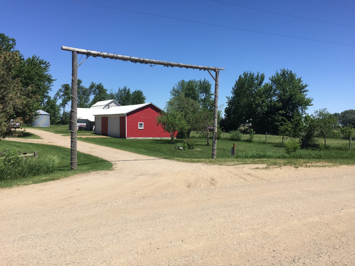 Beautiful rural acreage with private "bunkhouse" located minutes from the Okoboji Iowa Great Lakes, Historic Spencer, and the Clay County Fair, the world's greatest county fair. Enjoy the peaceful setting including outdoor fire pit area, gazebo area, playground, barn with animals to pet, fruit trees, and room to roam. Full kitchen is included. Two private bedrooms and plenty of hang-out space and extra sleeping spaces.