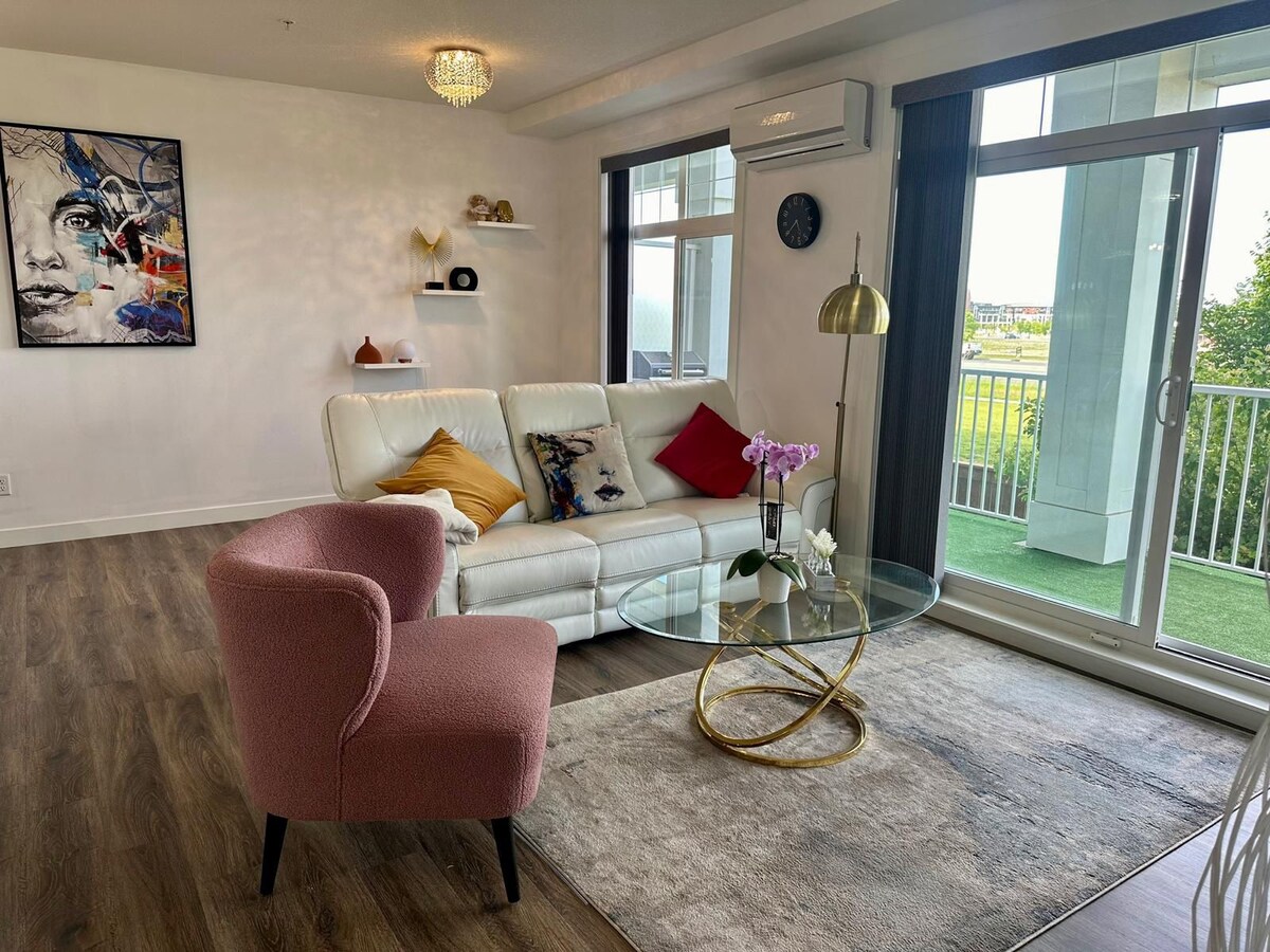 Welcome to our new suite, south facing with lots of natural sunlight, well designed and furnished with you in mind in the peaceful community of Seton SE Calgary. Reap the benefits of staying close to the South Campus Hospital, spruce Meadow, South Center Mall, several restaurants, and other points of interest. full kitchen, laundry room, ventilation system, smart TV, thermostat, high-speed wifi, full bathroom, Fireplace, Doorbell camera, parking, private access via Smart lock, and self-checking