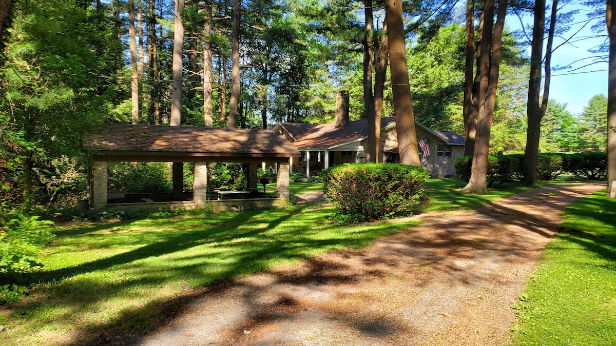 Escape to Hickory Creek Haven our Allegheny National Forest log cabin! Enjoy a campfire by the creek, stargaze, hike, and reconnect in our private and convenient location. Tionesta Lake 8 mi., Cook Forest 24 mi., Golf 9 mi., Allegheny River launch 2 mi. 3 rooms for families, friends, and couples. Porch with rockers and yard games, stocked kitchen & family room w/ping pong, games, Wi-Fi and tv. Dogs are welcome for a pet fee. Sleeps 10.