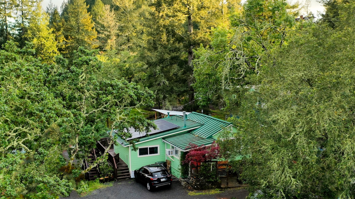 Nestled among majestic redwoods in the historic Rio Nido hamlet near Guerneville, Raven Haus is a delightful Hansel and Gretel cottage. Surrounded by towering firs, the whimsical charm of this cottage captures the essence of a bygone era. Located just a mile from the renowned Korbel vineyards and tasting room, guests can explore the local wine scene. The proximity to the popular Rio Nido Lodge and Roadhouse offers convenient options for dining, drinks, and entertainment within walking distance.