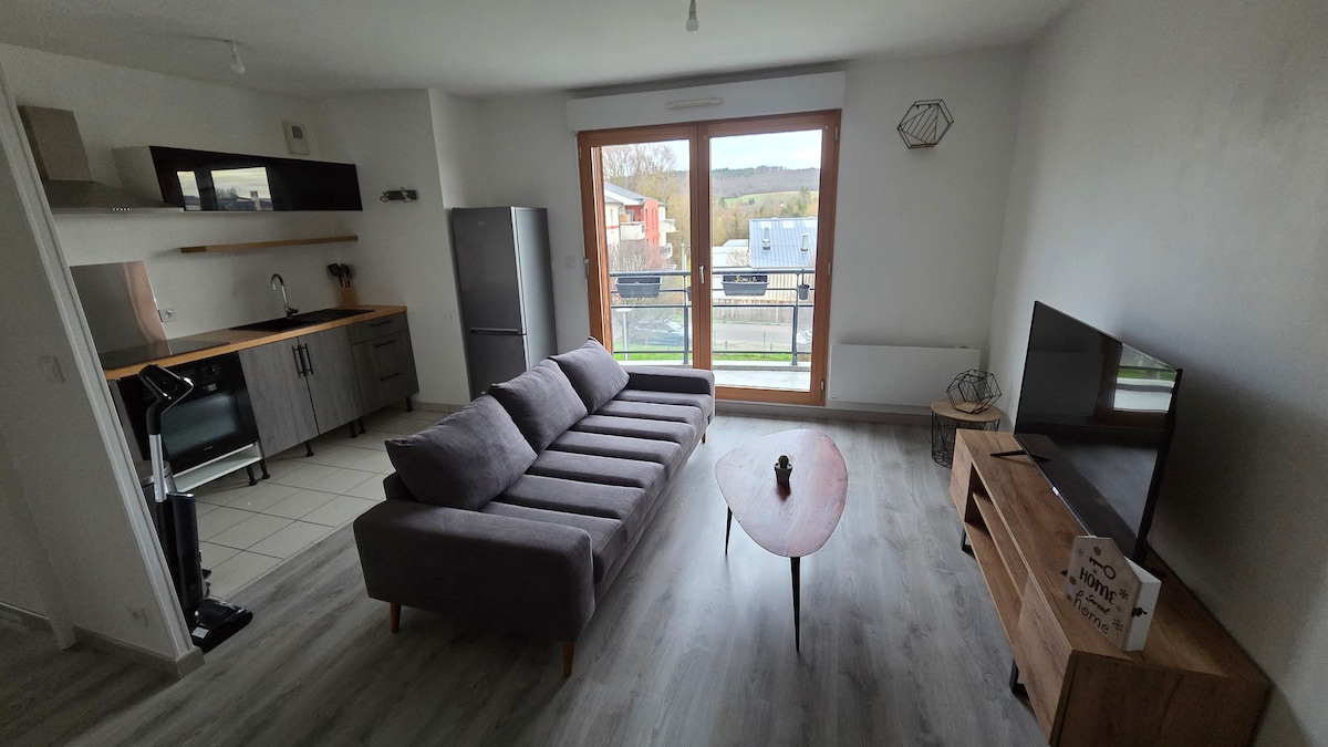 Kick back and relax in this calm, stylish space. 30 m² apartment on the ground floor, close to the city center and all shops. Free parking. The apartment consists of an equipped kitchen with a living room, a bedroom and a bathroom with toilet. You will find the Grand Casino, the Forges Hotel and its wellness area 10 minutes away. For walks: the lakes, the Epinay wood, the green avenue (bike and pedestrian path) to Dieppe.