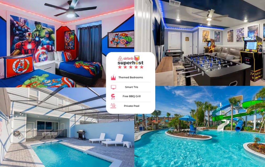 Bring the whole family! This stunning 5 Bedroom (3 suites) & 4.5 Bath Disney-themed vacation townhome in Windsor at Westside Resort. Enjoy all the amenities the resort has to offer. Book now! • Resort's clubhouse ALL INCLUDED amenities: heated spa/pool, lazy river, kids water park, bar/restaurant, video game & arcade room, gym, and recreational activities! • Private pool at property - heating option available upon request • Total for 10 sleeps! • A grill (at no extra cost)