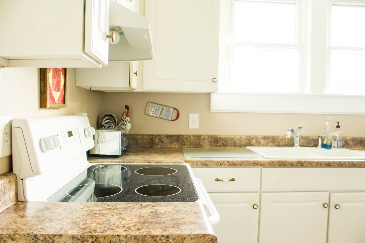 My 1906 little house is completely restored farmhouse that my great grandparents brought to our property during the depression. Our guest cottage is tucked away behind the main house where we live. It has original shiplap boards in the open living room and kitchenette with beautiful pine floors throughout the 700 square-foot house. There is a separate bedroom with 12 foot lofted ceilings and plenty of natural sunlight throughout. We know you will feel good the moment you walk through the door.