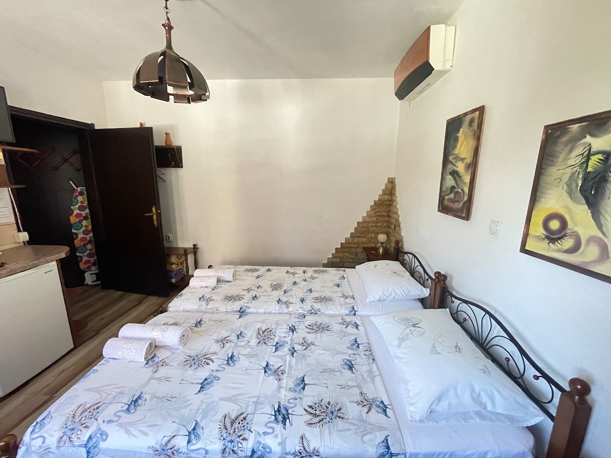RENOVATED and UPGRADED in early 2025 including Starlink high speed SpaceX internet and effective split Air conditioner. Villa Lara fascinates with its appearance and dominant location in the heart of Ohrid's OLD TOWN with a breath-taking view of the Lake. Studio rooms include private bathroom with shower, Wi-Fi, mini bar, kitchen, refrigerator, Jacuzzi and grill area.