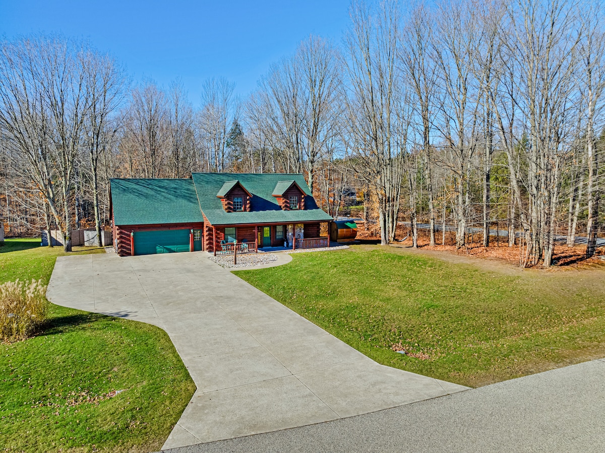 Thompsonville Lodge is a spacious log lodge home. Your family will love the spacious accommodations for up to 12 with 8 beds, 2 full and 1 half baths. - Outdoor Hot Tub - Outdoor wood burning sauna - Loft with log queen/queen bunk bed - 75" TV w/ Sonos Surround Sound, YouTube TV, Netflix, Disney+ & Spotify - Gas fireplace for ambience and heat - High quality mattresses - Log ski & snowboard rack - Heated garage - Polywood outdoor and Solo Stove firepit - Well stocked kitchen