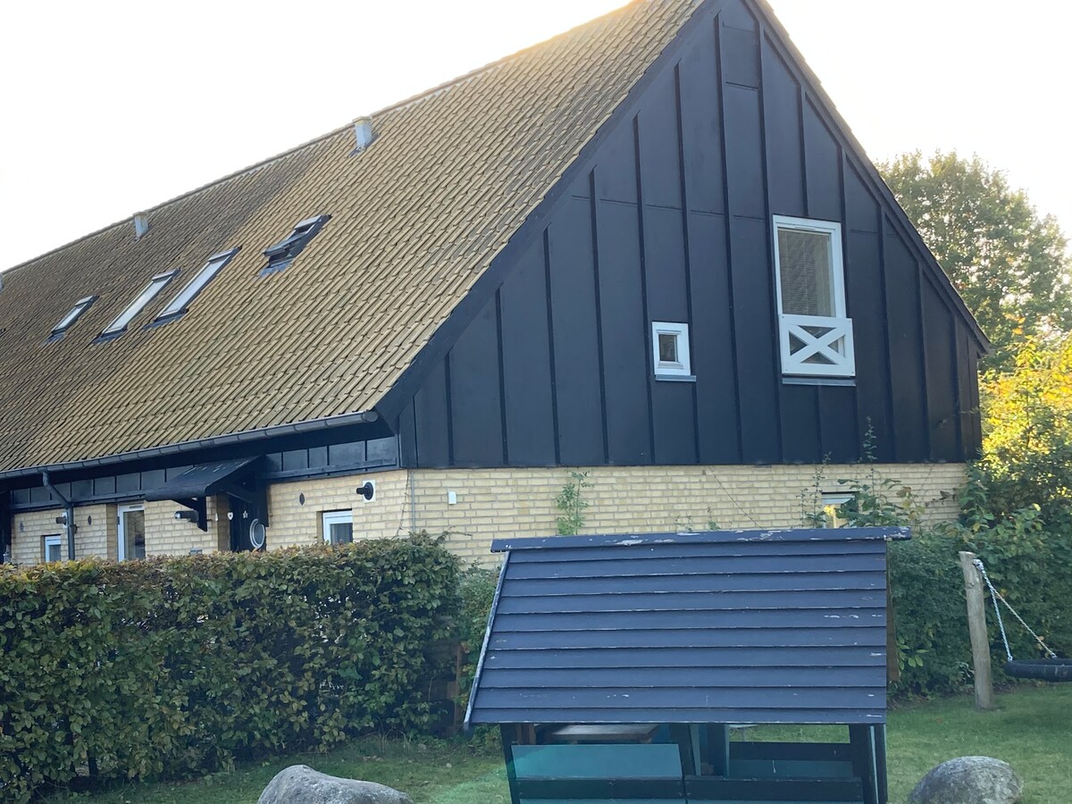 Stay in the countryside in Nordsjaelland 30 km from Copenhagen surrounded by fields, folding, forest and lake in an independent apartment established in the old barn. The apartment, which is brand new, has a new kitchen and bathroom, tilt ceiling, terrace, a well-functioning living room, and bedroom with closet. The barn is next to our place. Good location in relation to North Zealand and Copenhagen, close to Nivå harbour and beach and possibility for public transport, train and bus (there is a bus to and from Kokkedal station 400 m from the house).