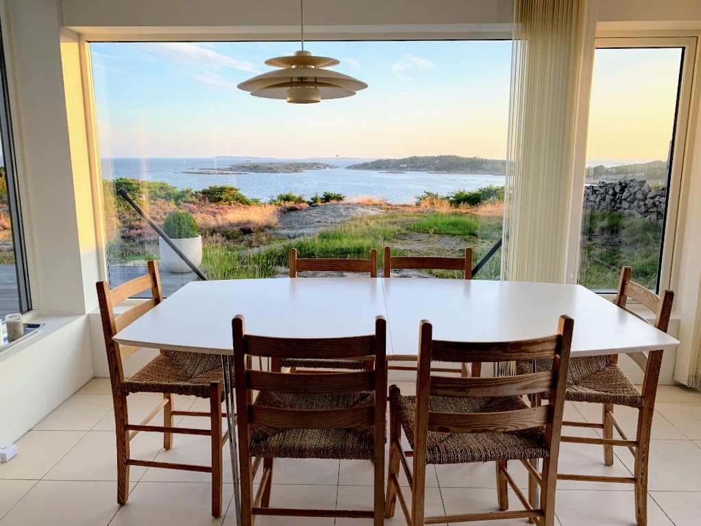 Modern Cabin with Panoramic Sea Views Stunning panoramic views and high privacy, overlooking the Oslofjord. This modern cabin features spacious terraces with sun from morning to evening. Heated bath tub (May-September) Bright, open living spaces. Beach: 4-minute walk to family-friendly swimming. Nature: Scenic coastal trails right nearby. City Life: 15-minute drive to Fredrikstad’s historic Old Town. 1h 30m drive to Oslo.