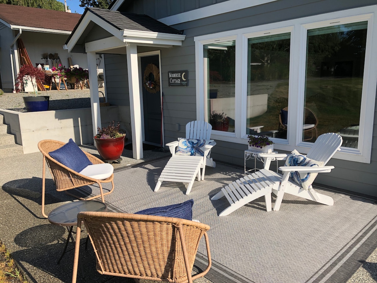 This peaceful, coastal cottage was built in 2019 and sits on 5 acres of lush green grass, gardens and overlooks Deer Lagoon and Useless Bay. The bright, modern farmhouse is magazine worthy, immaculate and features all brand new and top of the line furniture, appliances, linens, towels and is completely outfitted for the gourmet cook. For babies, the cottage provides a pak n play, booster seat and toys. For adults there is bocce ball and croquet upon request.