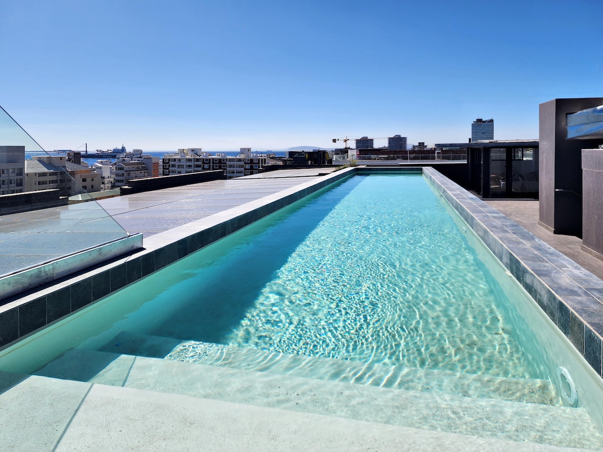 This incredible 2 bedroom apartment offers breathtaking views over both ocean and mountains. It is centrally located near several beaches, restaurants and shops, and is a perfect home for families, couples or business travellers looking to stay in a comfortable, beautiful space. Enjoy breakfast or sundowners on the spacious balcony after a cooling dip in the pool, while preparing your food on the barbecue or in the fully kitted kitchen. This penthouse comes with free parking and fibre internet.