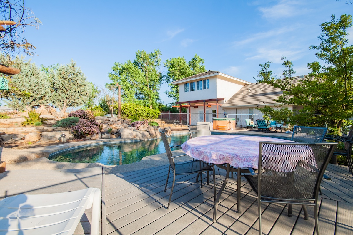 Wonderful country living close to North Fresno and Madera in Central California. Great location for exploring the Sierra Nevada Mountains, Yosemite, Kings Canyon, Central Coast Wine Country. Less than 3 hours drive to Silicon Valley and Sacramento. Only 1-1/2 hours to China Peak Ski Resort. Short drive to Chukchansi Gold Casino and Table Mountain Casino. Close to Valley Children's Hospital. Also enjoy nice local wineries. Or...just hang in the salt water pool. Perfect for spring or summer.