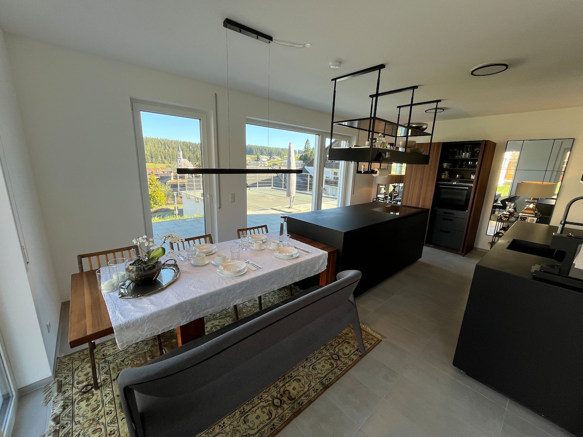The blackforestloft is located in the Terrassenpark Schonach im Schwarzwald, is on the 3rd floor with an elevator and offers a unique panoramic view. The associated underground parking space is very convenient. An indoor pool is also located in the building for free use-open. Hiking trails go directly from the house. Plus local short tax: €2.50 per adult/night €1.00 per child/night WiFi free of charge Bed linen + towels are included in the price.