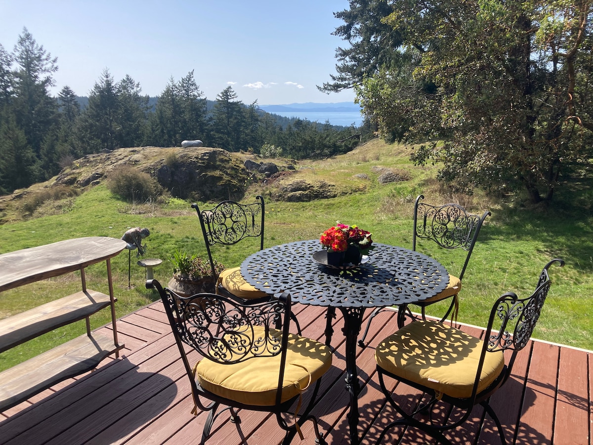 Haro Haiku - West side of beautiful San Juan Island The house is nestled just below the ridge line with 180 degree views, framed by the Olympic mountains, the Salish Sea, the Straits of Juan de Fuca beyond, and Haro Straits immediately below. Sunrises, sunsets, ship and boat traffic, the lights of Victoria, the Olympic Peninsula, clear starry nights, cloud formations, combined with the sound of whales and surf below. It never fails to inspire and delight.………truly awesome!! SJC Permit #05CU11.