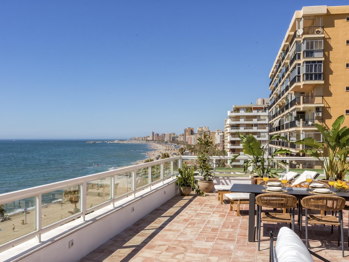 Appartement front de mer de 100 m2 avec 2 grandes chambres à coucher. Refait à neuf. Très fonctionnel et agréable. 4 eme étage avec ascenseur. Face à la plage aménagée avec restaurants, transat et paillote. En plein centre ville, à 3 min de la gare routière et du tram vers l'aéroport (35 mn, 3€) et le centre de Malaga (45 mn, 3,5 €). Proche tous commerces. nous avons un autre appartement très apprécié également https://abnb.me/kx5wBwjLdyb Amazing location