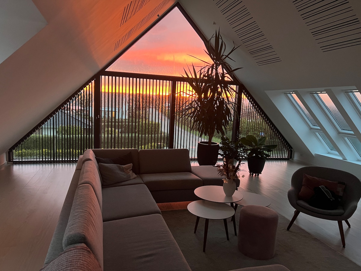 Here you can save a lot of money by doing the final cleaning yourself. The apartment has full ocean views on 2 floors overlooking Ballen Strand. You simply look directly down into the sand from the glass sections. Undisturbed terraces both to the east and west with motorized awnings. In addition to underfloor heating, you get 2 full bathrooms, 3 separate bedrooms and a large corner sofa bed in the living room. TV in the living room/kitchen as well as fiber net. Parking with chargers and key box. Take advantage of Strandparken's common facilities and enjoy an optimal location.