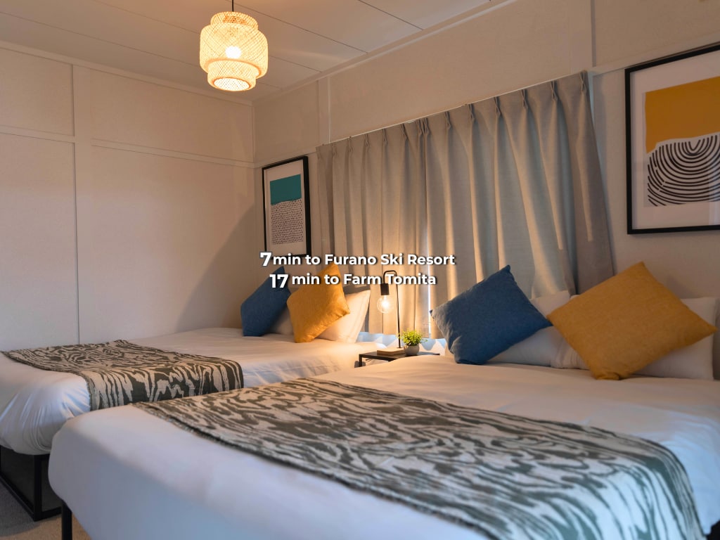 In the summer, travel to a quiet landscape through lavender fields and beautiful hills.In winter, Furano Ski Resort is just a few minutes’ walk away. Feel the shift of nature and the seasons, but a little away from the routine —— there is such a time here. At night, turn off the lights and enjoy a movie on Netflix or youtube. In a space away from the bustle of the city, your mind and body are relaxed. It feels like you're in the comfort of a hotel, and it feels like you're invited to someone's tasteful room. Designed with high-quality furniture and natural materials, it adds a good tranquility to your stay. It can accommodate up to 3 people with 2 single beds and a sofa bed. Fully equipped with washing machine with dryer, kitchen, and cooking utensils, both short-term and long-term. Active day and quietly filled nights. Enjoy the charm of Furano with a sense of "quiet luxury".
