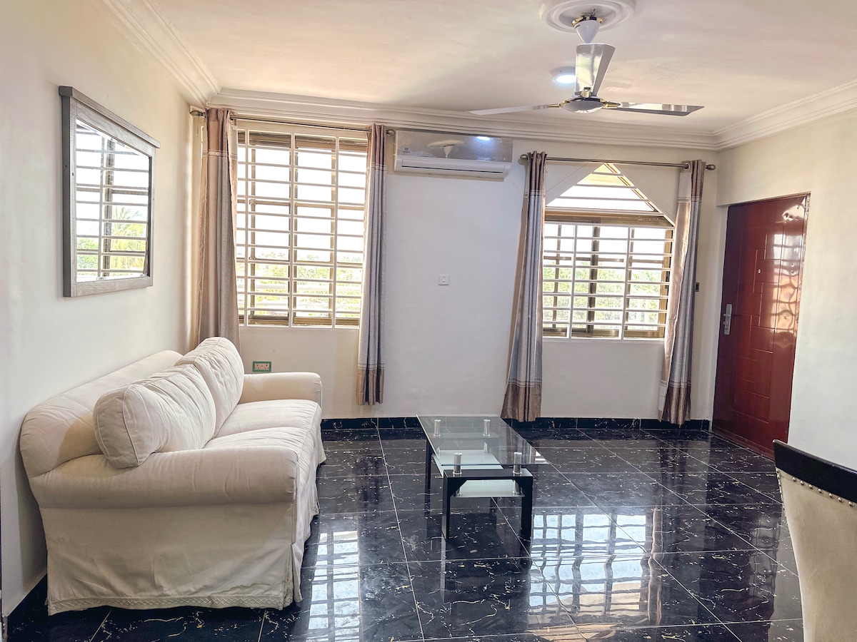 Welcome to your home away from home! This spacious and comfortable one-bedroom flat is perfect for both short and long stays in Accra. Located in the vibrant city center of Haatso, you'll enjoy easy access to supermarkets, restaurants, and local attractions, all within a few minutes' walk. Key Features: Super King-Size Bed Air Conditioning & Ceiling Fan Spacious Bathroom Fast Wi-Fi Private Balcony Smart TV Free Parking Work Space