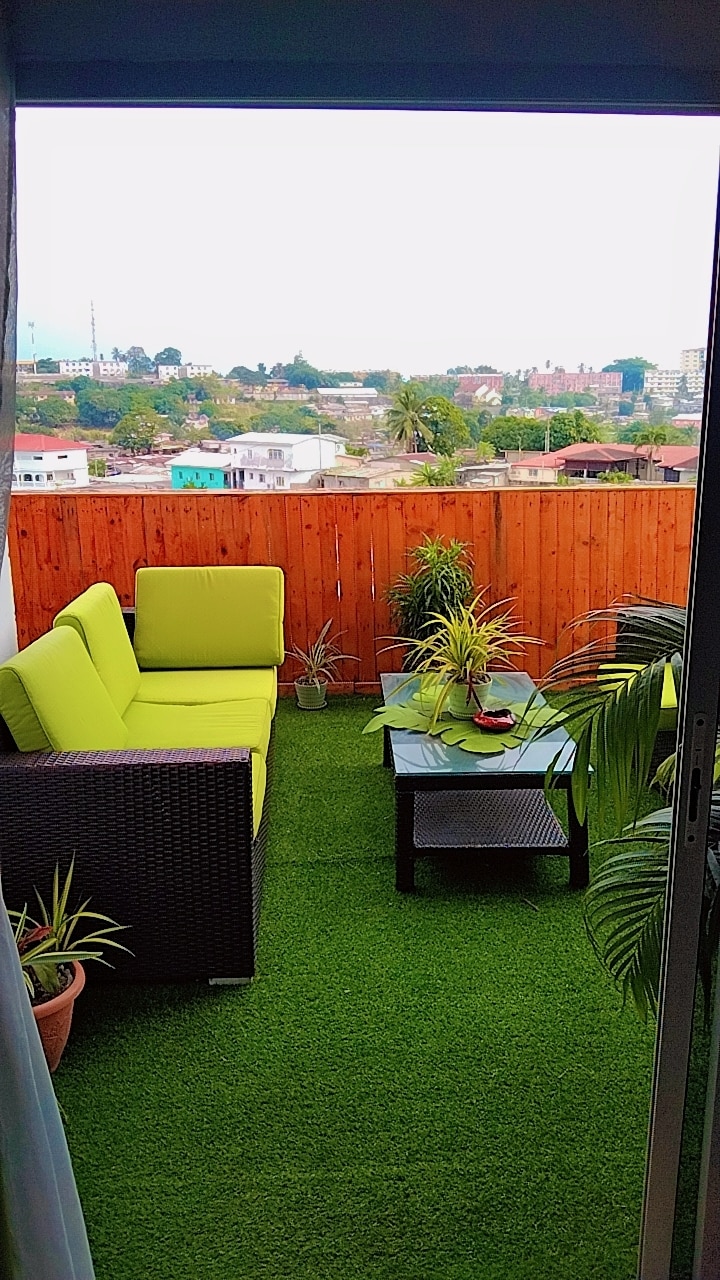 Appartement refait a neuf Intérieur contemporain et cosy Centre ville Idéal pour voyage d'affaire Totalement équipé, ne posez plus que vos valises! A partir d’une nuit. Possibilité longue durée 2 balcons 2 chambres Sur place: Wifi / IP TV / Ménagère / Smart TV Gardien sur place 24H Transfert aéroport sur demande 10 000fcfa de courant offert pour les 1ères nuits. Après c’est à votre charge. **Longue durée: une caution vous sera demandée à votre arrivée et restituée à la sortie des lieux**