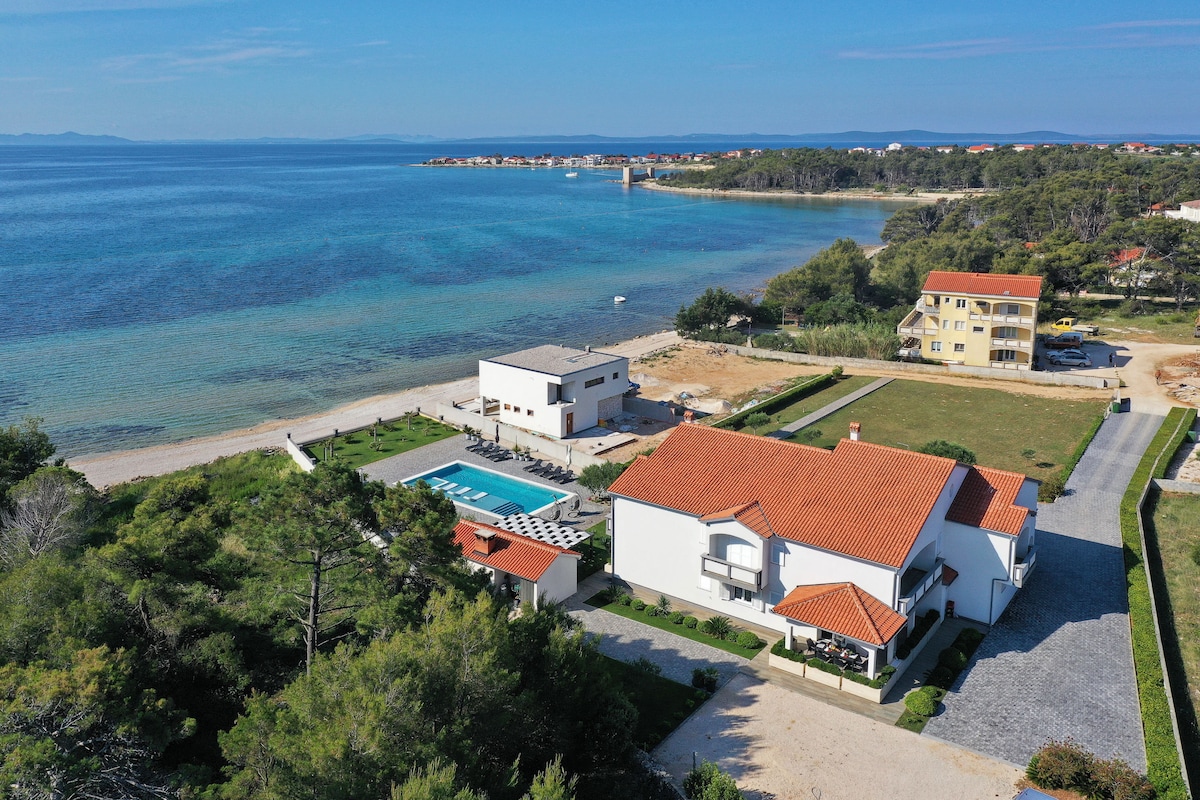 Modern brand new elegant villa located in a quiet and exclusive area of Novalja. A perfect mix of luxury, privacy, and top location.The villa features 4 bedrooms, each with a private bathroom and balcony. Spacious living room with kitchen and an additional bathroom. Covered outdoor kitchen with BBQ, dining area, private pool, private parking for 2-3 cars. Just 150 m from Beach and 200 m from town center. Surrounded by restaurants, bars, shops, and only 150 m from the bus stop to Zrće Beach.
