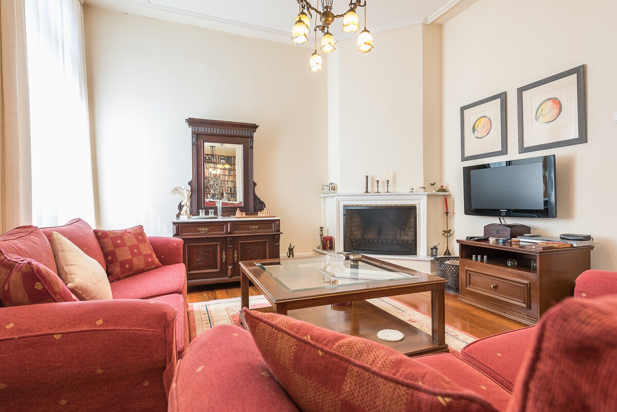 Neoclassical classy apartment 145 m2, in the center of Athens:High carved ceilings, two bedrooms with double beds, wifi,kitchen, emergency supplies,desk for laptop,air conditioning,hangers,TV,washing machine,high-fidelity sound system, 24-hour hot water,autonomous central heating,fireplace,iron,hair dryer, shampoo. Only 5 mins walk from Victoria metro station,6 mins walk from Attiki metro station, 2 mins walk to bus/trolley stations,10 mins walk from the National Archeological Museum