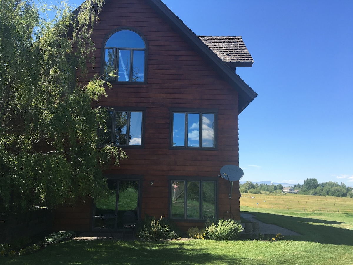 Quiet neighborhood 15 minutes from downtown Bozeman, 5 minutes from canyon hiking trails. Wake up to the sound of country winds, roosters and owls singing. I live upstairs so you will hear an occasional sounds of life. I have an outdoor cat, a small Cockapoo that would love to greet you and an older blind Shitzu. There is a fire pit with chairs that you are welcome to use. The kitchen is fully equipped and there is tea and coffee ready to be brewed. I am always available with any help.